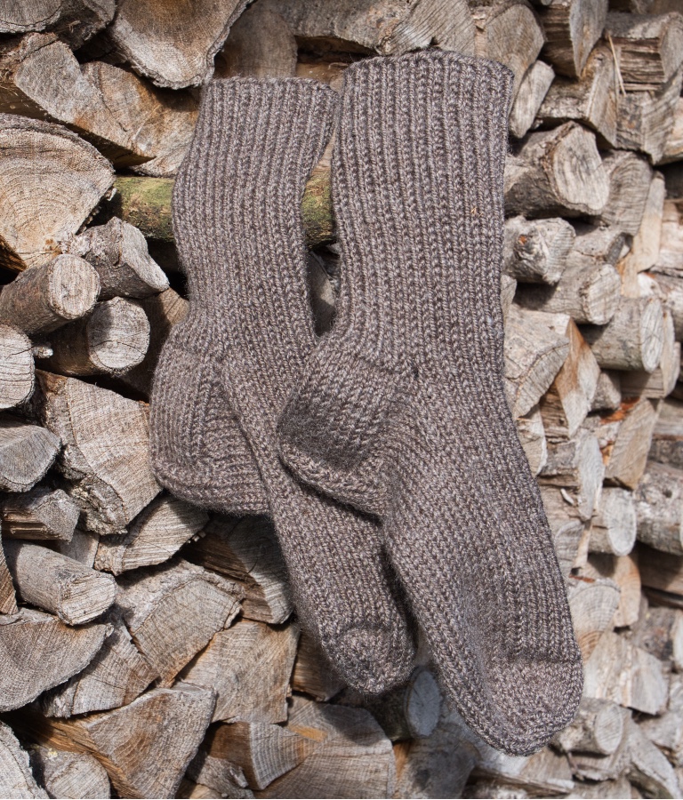 SokkenWerksokken29 augustus 2023Eigen ontwerp; garen: Botter IJsselmuiden OsloSokken voor in de klompen of laarzen of voor de tv. Op verzoek zonder boord. De blauwe sokken hebben een boemeranghiel en de bruine een Franse hiel. De sokken zijn gebreid van sterk, dik garen: 20% wol, 60% acryl en 20% polyamide.